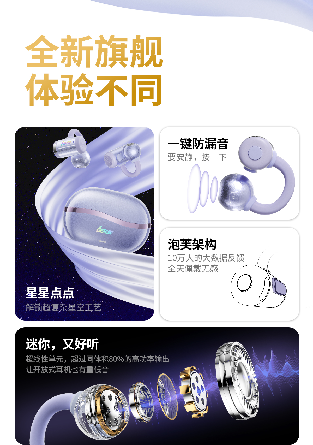 星空工艺丨物理按键丨超重低音丨超长续航丨双重防丢丨蓝牙6.0丨泡芙架构