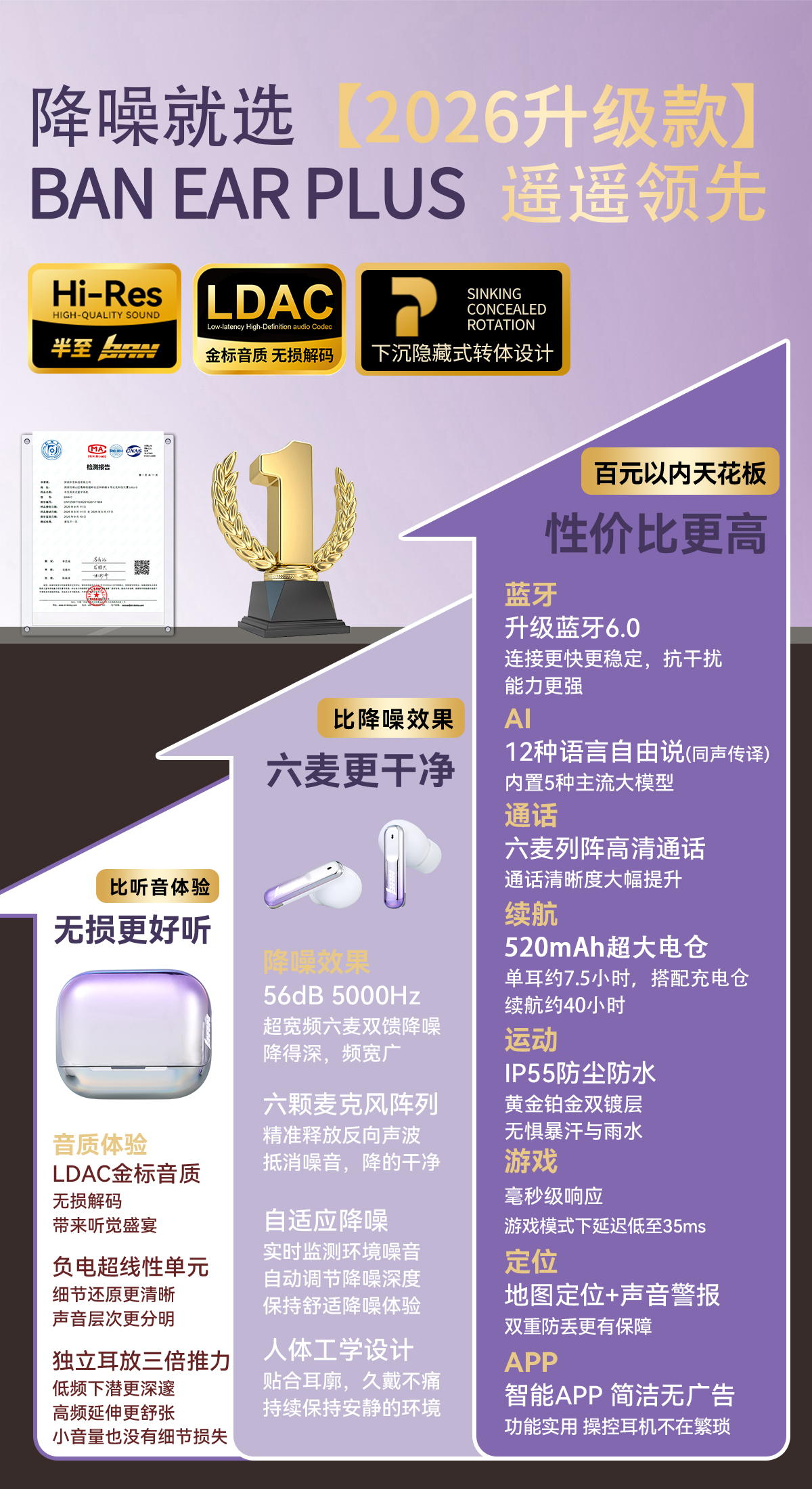 六麦双馈丨入耳式降噪耳机丨超重低音丨超长续航丨双重防丢丨蓝牙6.0丨渐变工艺丨锰钢自收口皮套